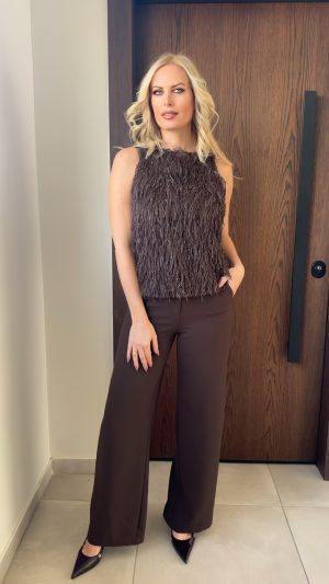 Βελουτέ παντελόνι με γκλιτερ- Καφε